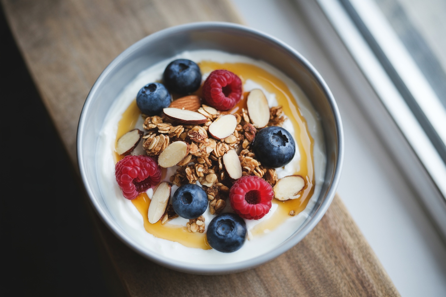 Top with mixed berries and granola.